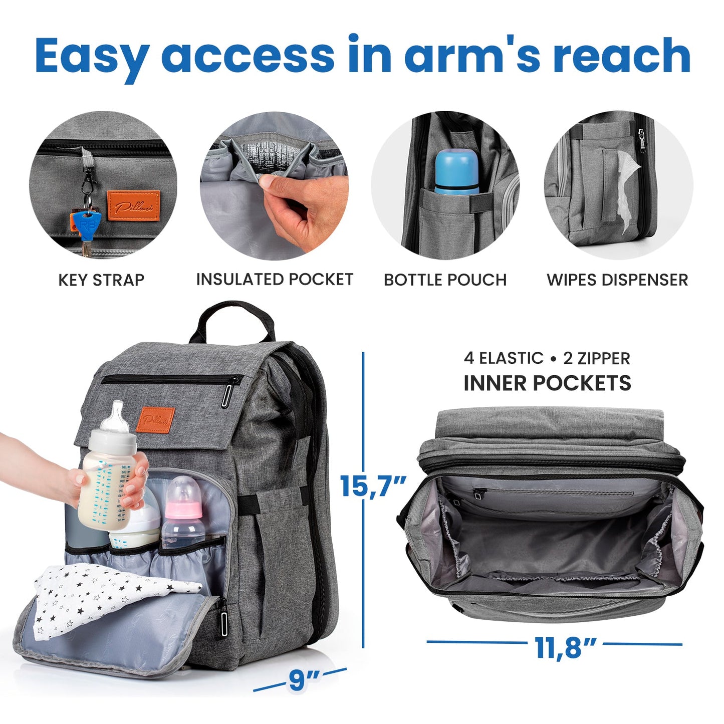 - 【Excellent Gift Idea】- Whether you're a new mommy, nursing your child toddler or a parent of twins, get this Pillani diaper backpack as your go-to cute and stylish baby bag when traveling with the family. It makes for a great maternal & baby must haves, registry for baby, and gender-neutral baby shower gift for new parents! Click 'Add to Cart' now and don't miss out on our trendy and modern products!