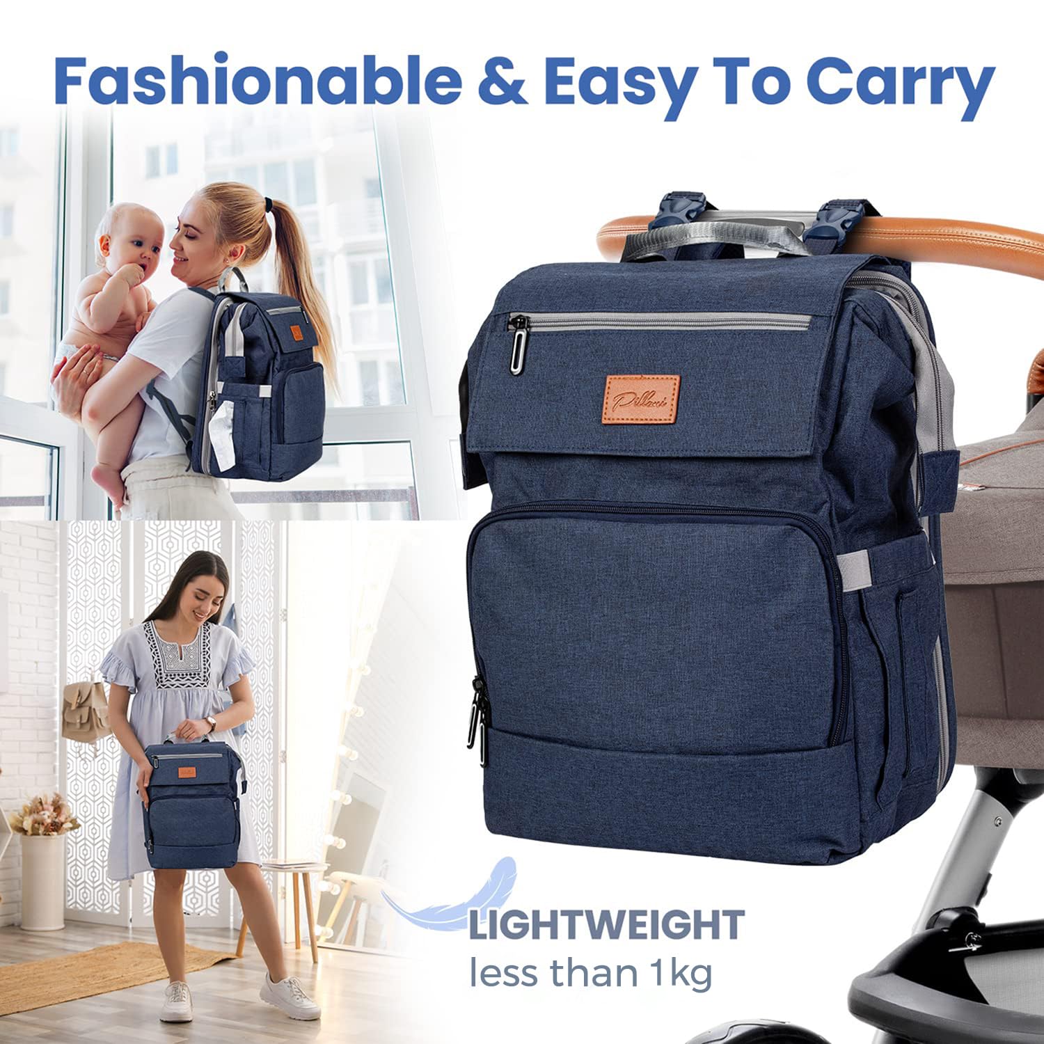 - 【Superior Quality & Structure】- Built for years of use, our convertible XL diaper bag backpack is made of durable & waterproof 300D Oxford fabric that makes it ideal even during the wet season. Thanks to its unique, high-quality design, our diaper backpack allows you to have a bigger & more flexible storage for your baby essentials. It's lightweight at less than 3 lbs w/ extra reinforced seams & deform and tear-resistant design that makes this Pillani diaper bag backpack & baby bag long-lasting.