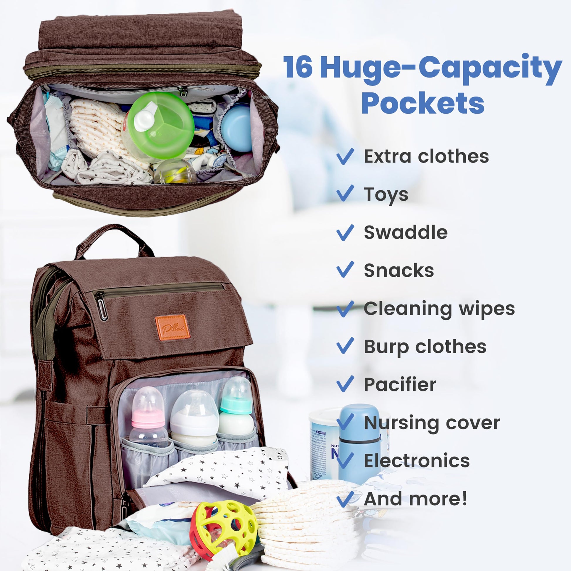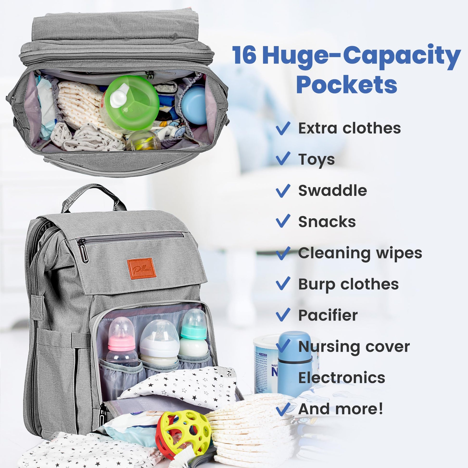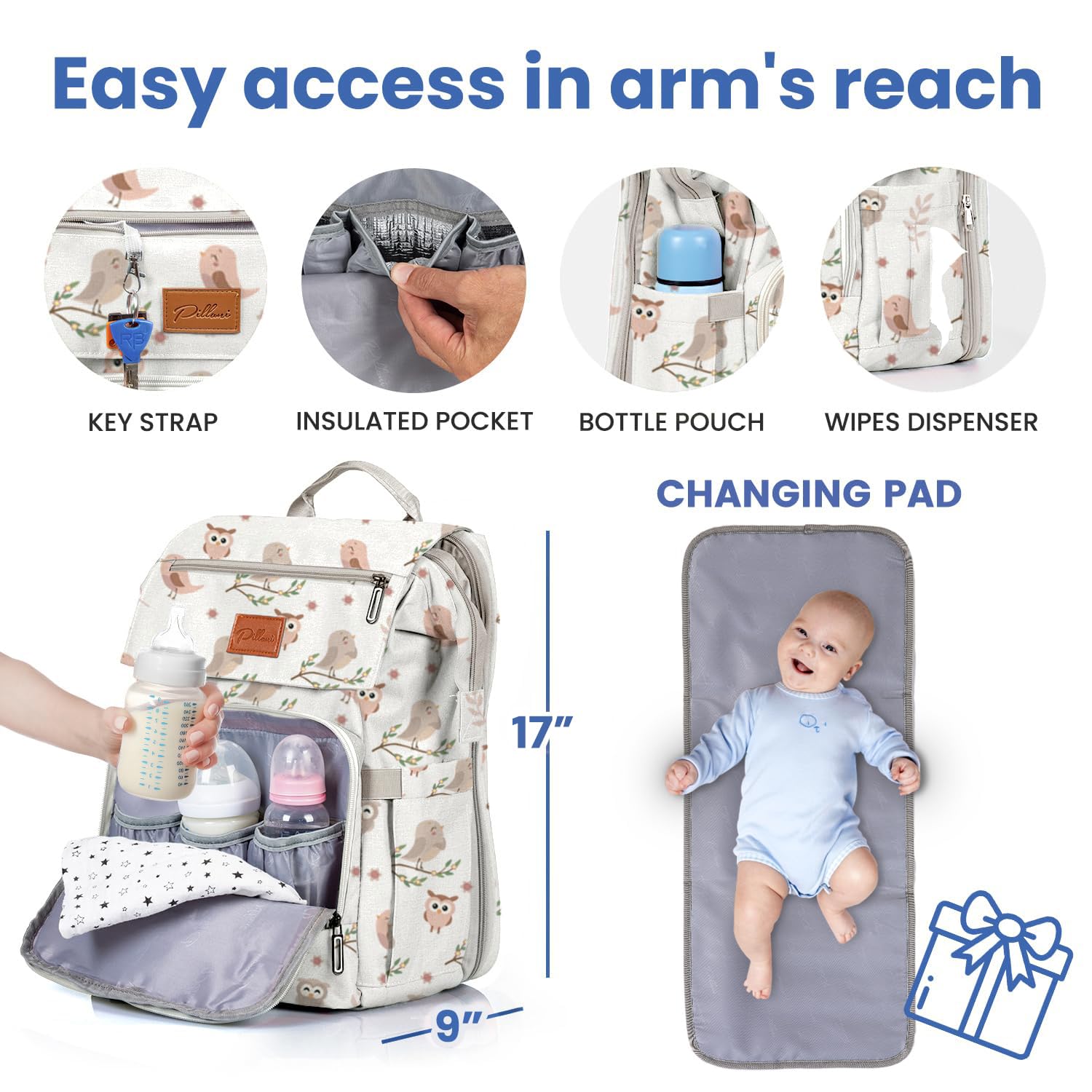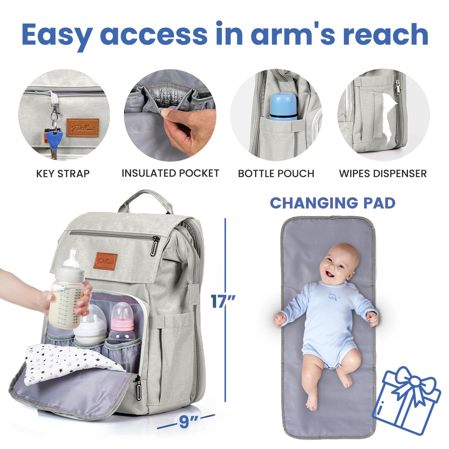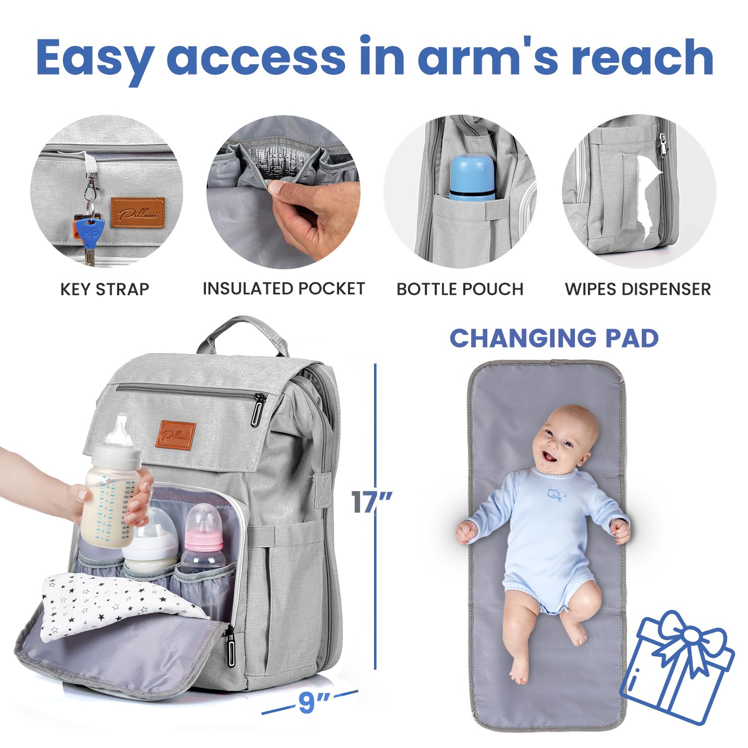 - 【Baby Shower Gifts Idea】- Whether you're a new mom, nursing your child toddler or a parent of twins, get this Pillani diaper backpack as your go-to cute and stylish baby bag when traveling with the family. It makes for a great mom & baby gifts, registry for baby, and gender neutral baby items and baby shower gifts for new parents! Click 'Add to Cart' now and don't miss out on our trendy and modern products for your baby essentials!