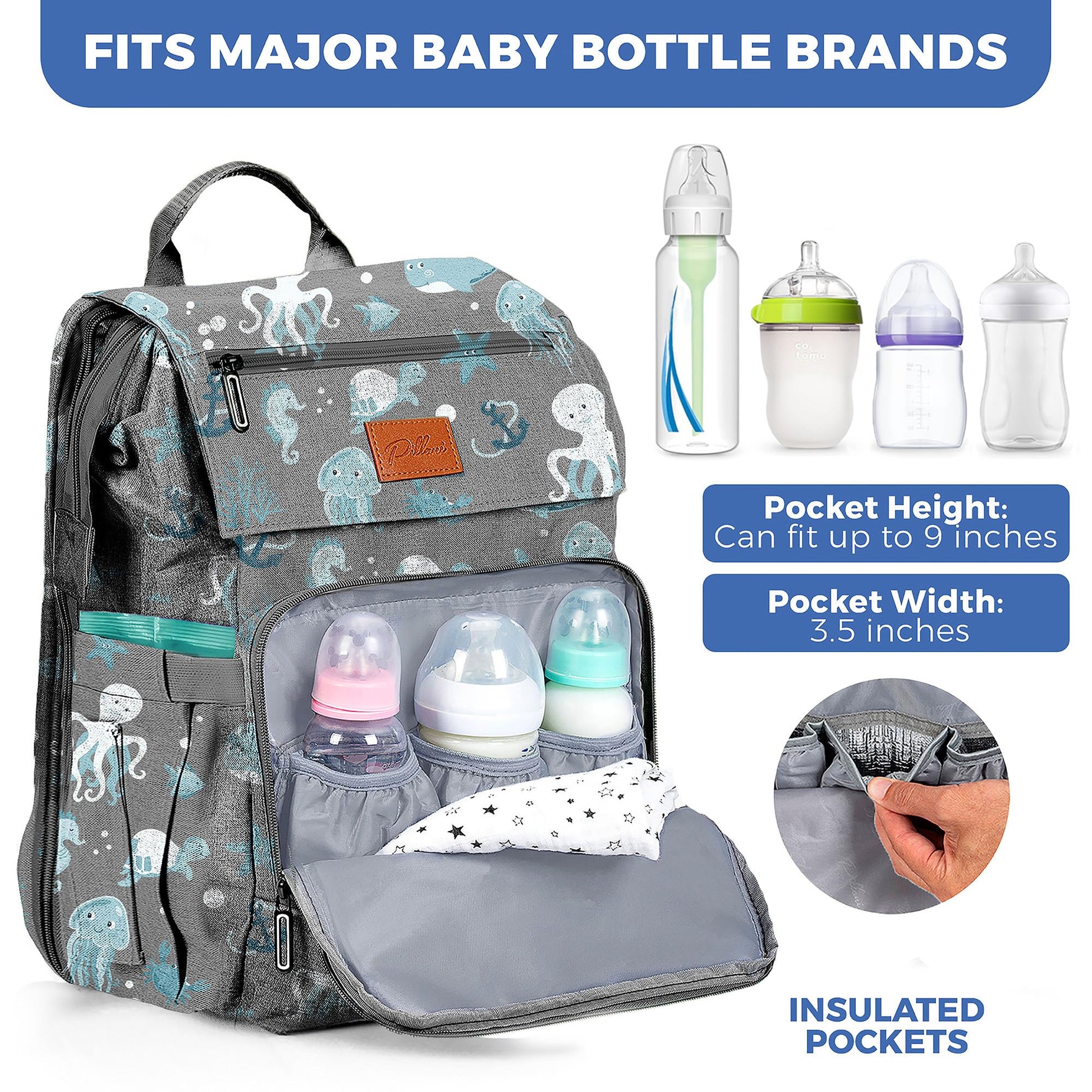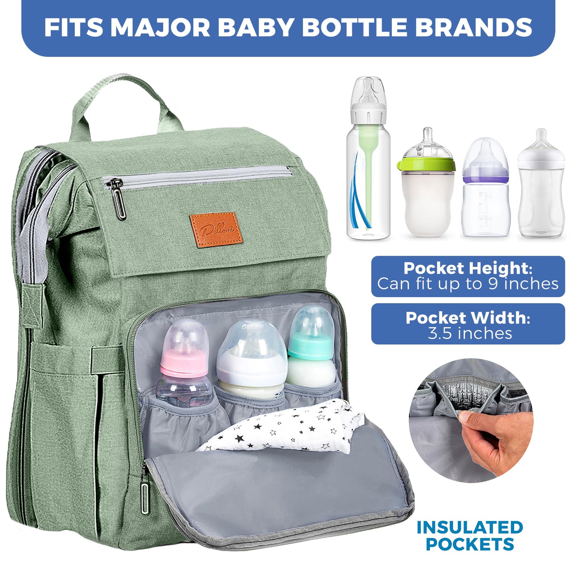 PILLANI Baby Diaper Bag Backpack - Baby Bag for Boys & Girls, Diaper Backpack Baby Registry Search, Newborn Essentials