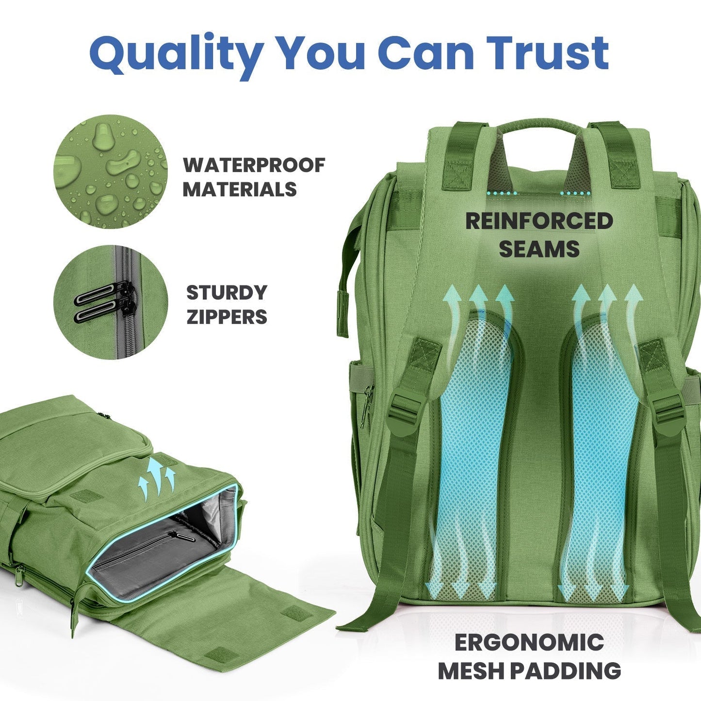 - 【Versatile Diaper Bag】- Enjoy outdoor convenience like never before! This diaper bag has a 4-in-1 multi-function design, making it ideal as a baby must-have for parents with kids. It's one of the best purses to carry supplies that is spacious enough to carry most of your baby's necessities and still looks compact and organized. It's the ideal travel bag for longer trips with 2 built-in stroller buckles.