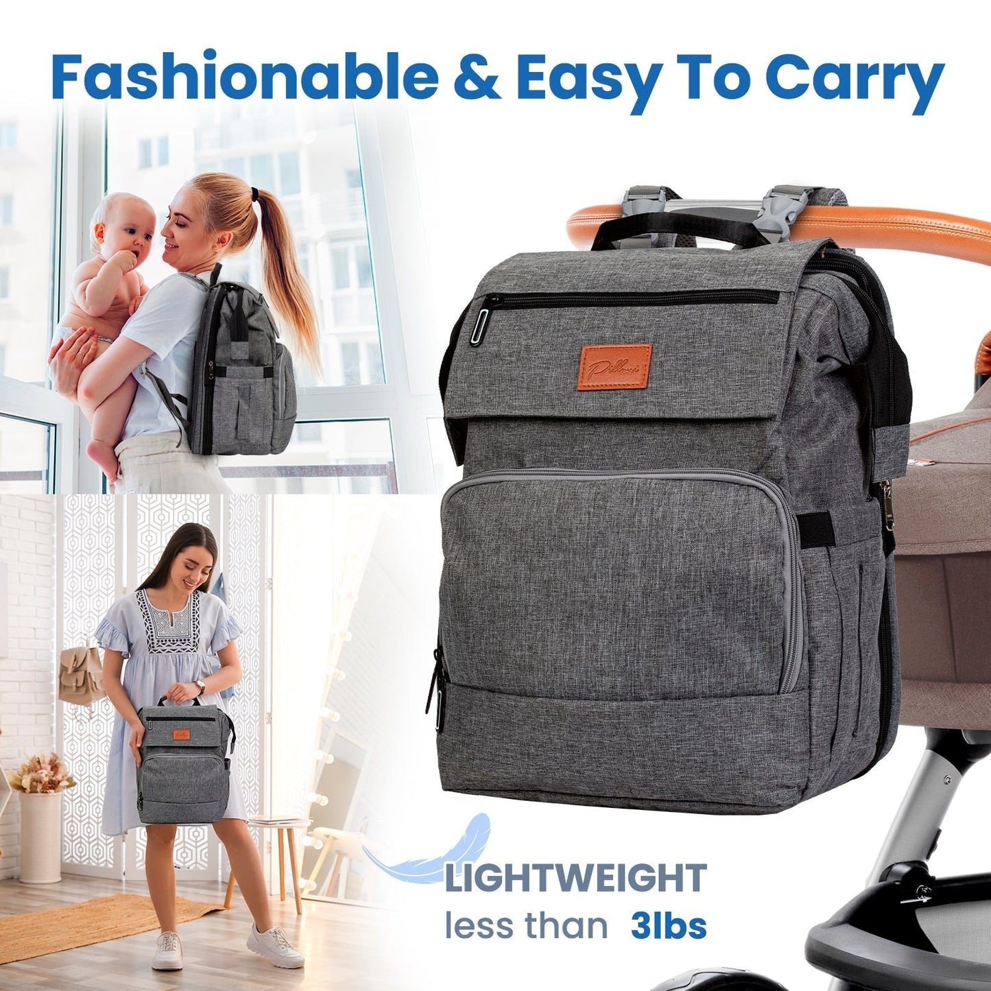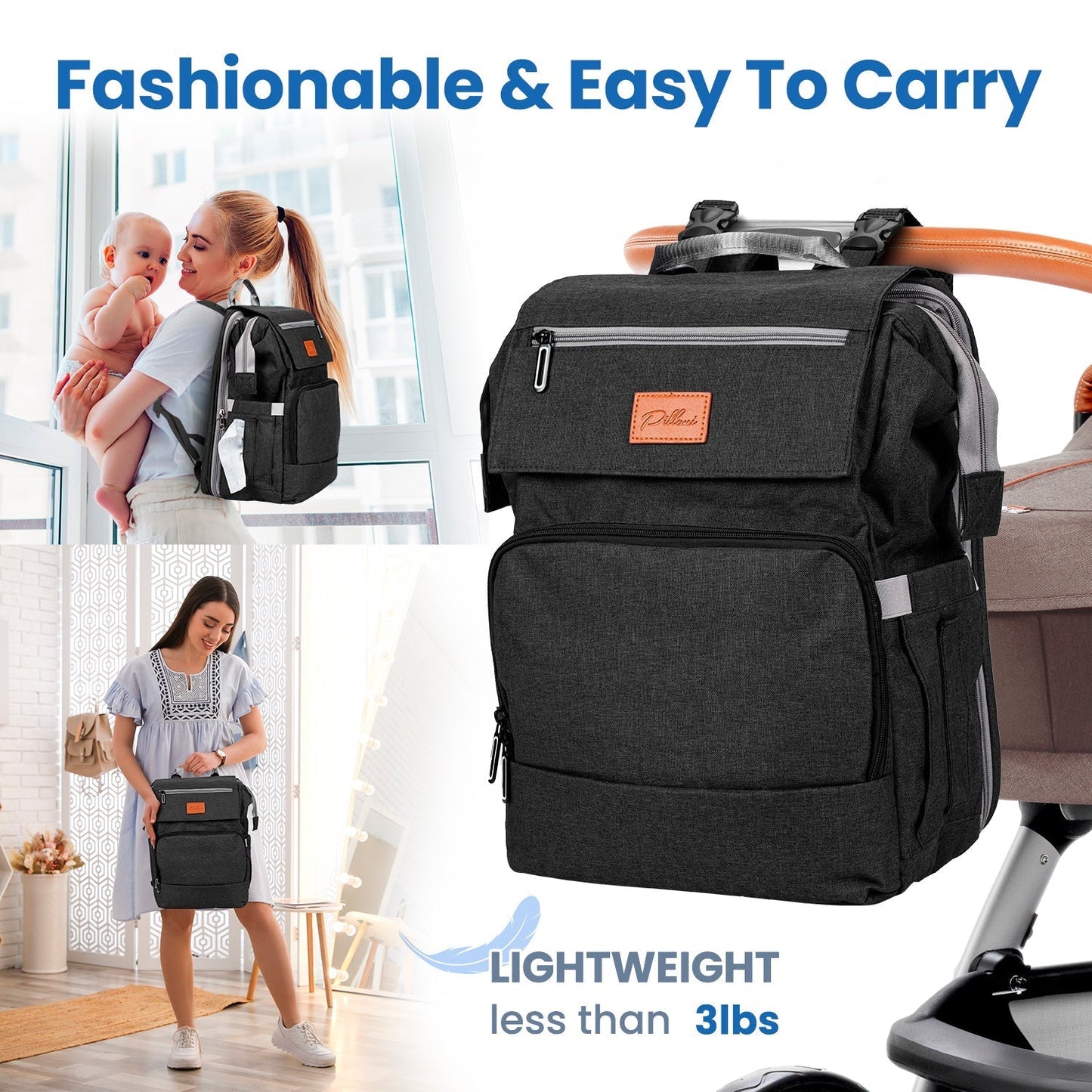 - 【Superior Quality & Structure】- Built for years of use, our convertible XL diaper bag backpack is made of durable and waterproof 300D Oxford fabric that makes it ideal even during the wet season. Thanks to its unique, high-quality design, our diaper backpack allows you to have a bigger & more flexible storage for your baby essentials. It is lightweight at less than 3 lbs with extra reinforced seams and deform and tear-resistant design that makes this Pillani diaper bag backpack long-lasting.