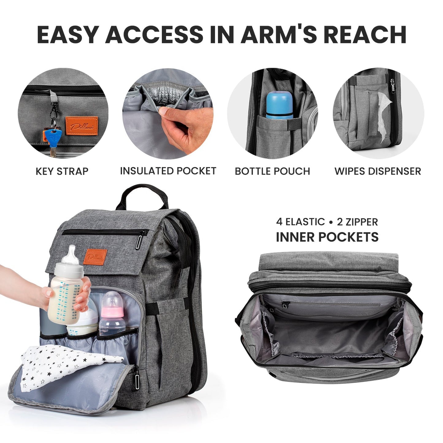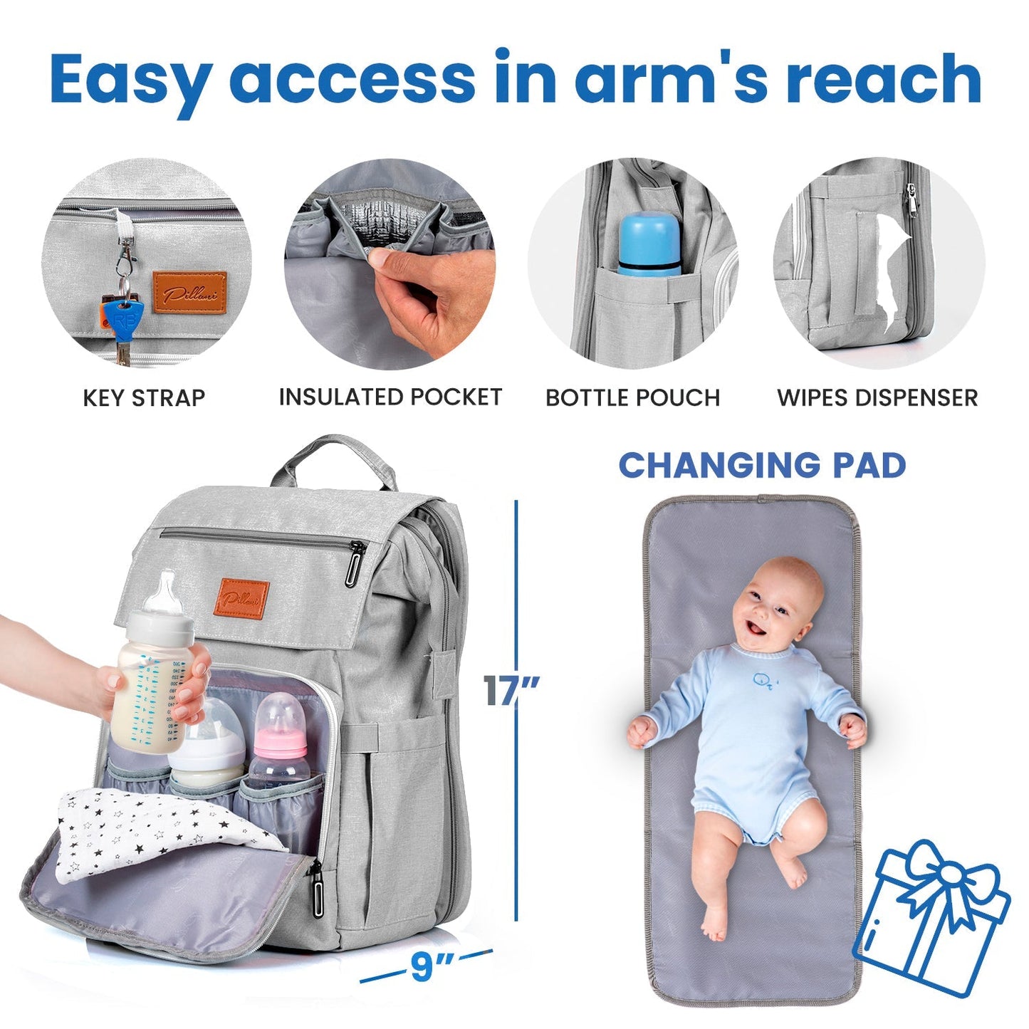 - 【Excellent Gift Idea】- Whether you're a new mommy, nursing your child toddler or a parent of twins, get this Pillani diaper backpack as your go-to cute and stylish baby bag when traveling with the family. It makes for a great maternal & baby must haves, registry for baby, and gender-neutral baby shower gift for new parents! Click 'Add to Cart' now and don't miss out on our trendy and modern products!