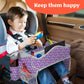 - Portable Carseat Tray:Â Our car seat tray for toddlers has a compact size of 16.5 x 13 x 4.5 inches with easily accessible organization pockets. It sits securely on a child's lap and allows kids to enjoy road trips while drawing with their art supplies, having snacks, or playing with their favorite toys. This car set will give parents the advantage of enjoying a quiet ride while their kids stay entertained when traveling or during airplane flights!