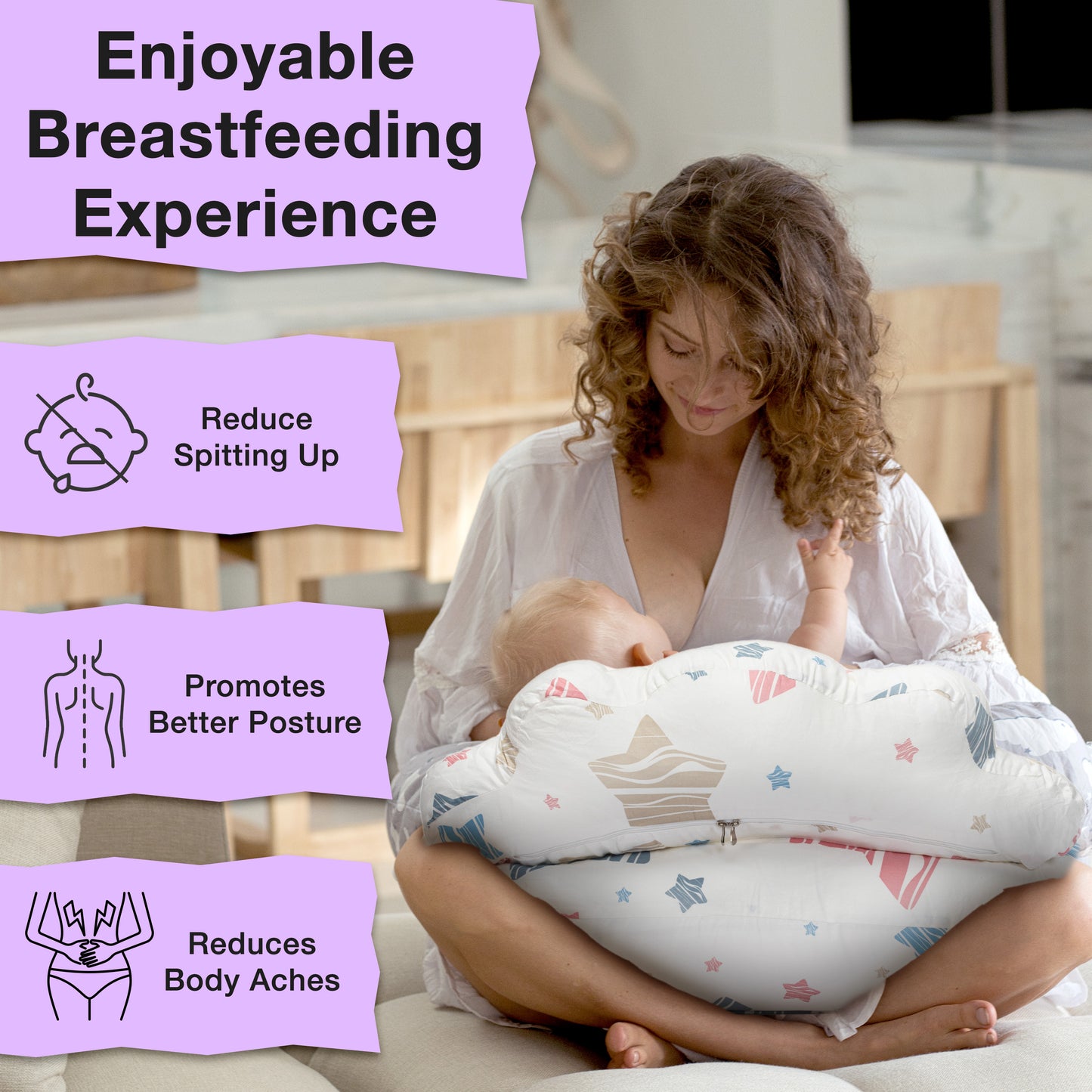 - [Superior Support for Mom and Baby] Experience the ultimate support with our exceptional breastfeeding pillow. It is expertly designed to promote better posture during nursing as it effectively takes the pressure off your shoulders, back, and neck, reducing strain and allowing for a more comfortable and enjoyable breast feeding experience. By relieving these areas of tension, you can fully focus on the precious moments of bonding with your newborn without any discomfort or worries about body aches.