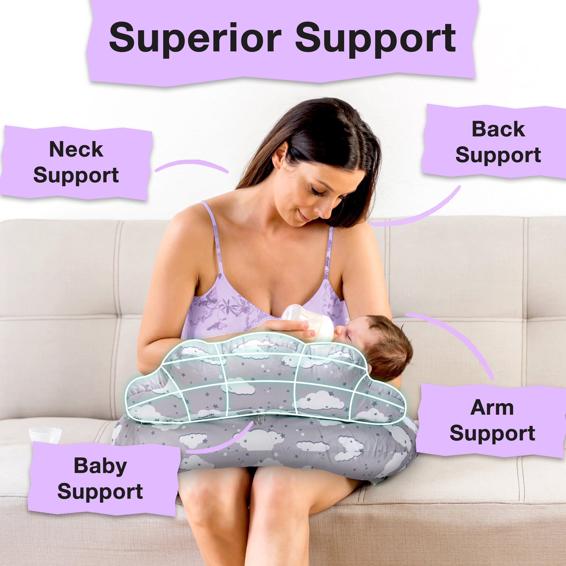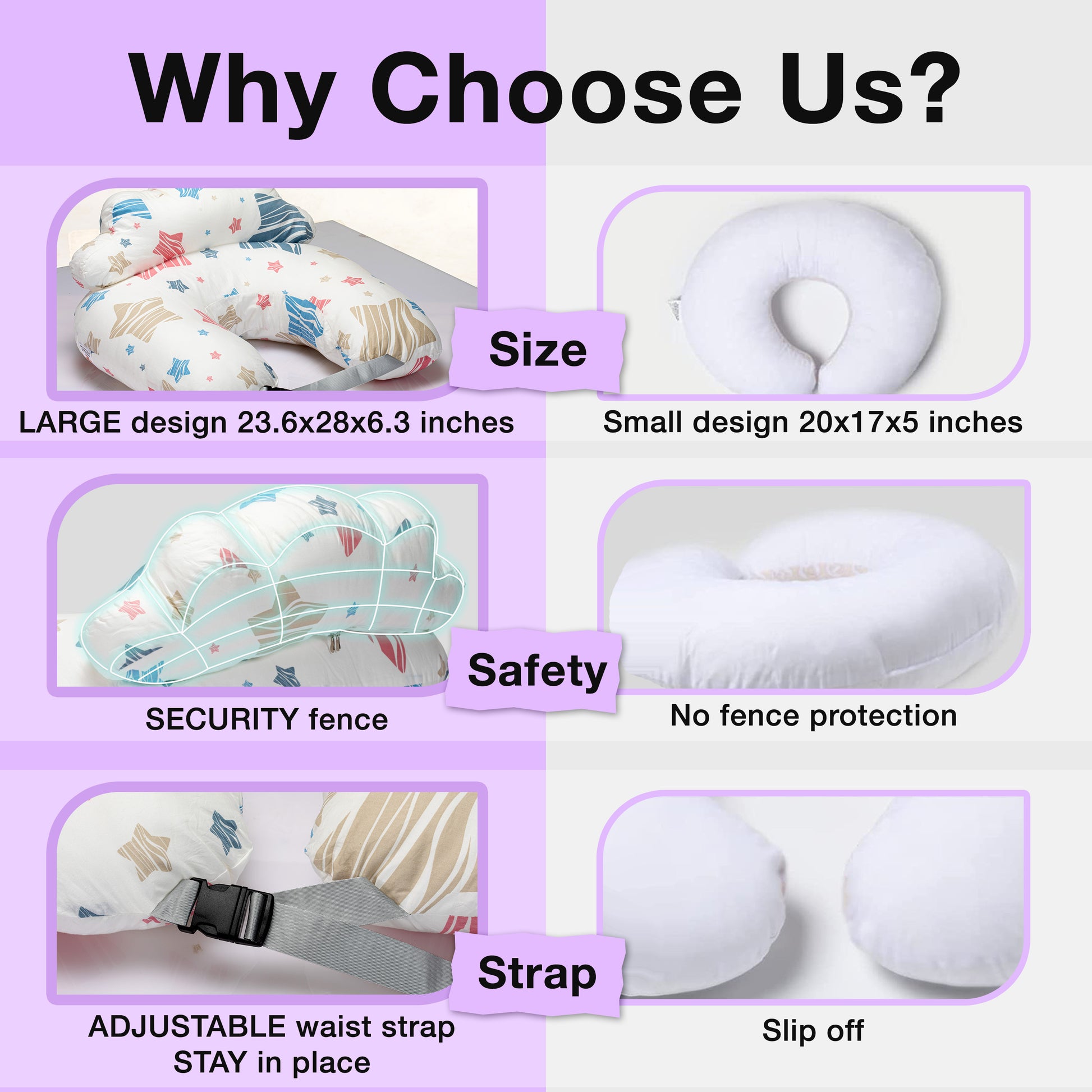 - [Baby Safety is Our Priority] The innovative cloud design offers excellent security and support, preventing your baby from rolling in or away while breastfeeding. Plus, the unique C-shaped base and the adjustable waist strap eliminates the gap between you and your baby. It securely fastens to your body and ensures that the pillow stays in place while providing a snug fit that promotes stability during nursing sessions.