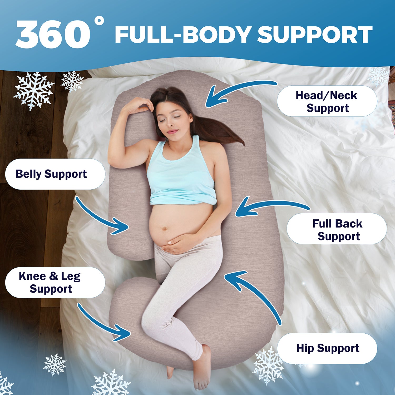 - 【Maternity Support You Can Trust】- With our pregnancy pillow, you get the ultimate balance between comfort and support. It's made to provide exceptional comfort, pain relief, and quality rest for expecting moms as it delivers full support to your growing belly, as well as your head, shoulder,upper and lower back, belly, sides, knees, hip , leg, foot, ankle, and pelvis. This maternity pillow for pregnant women is ideal for all kinds of body shapes and a perfect fit for both side and back sleepers