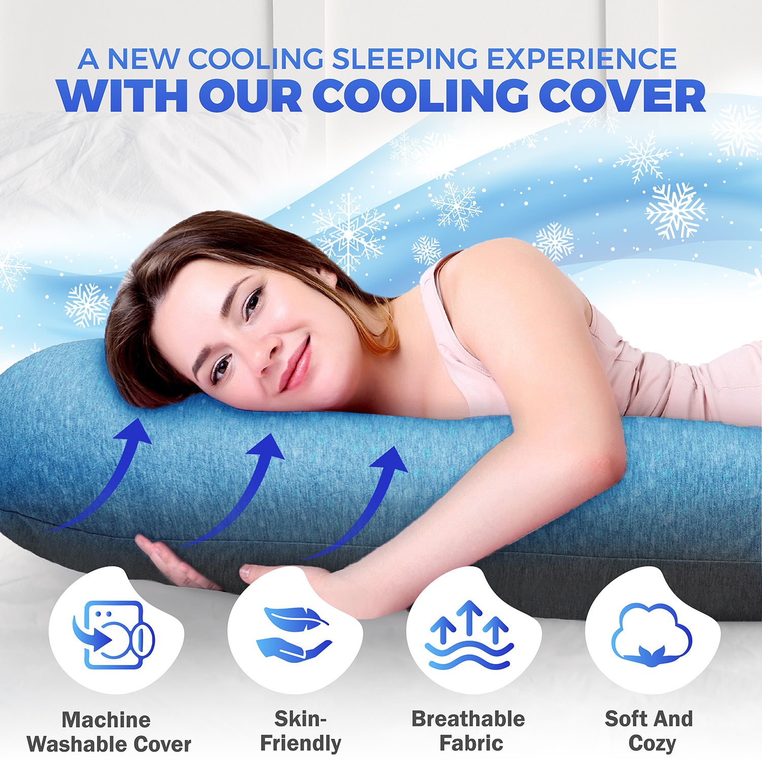 - 【Your Quality Pregnant Pillow Choice】- Our 57-inch full body pillow for adults features an ergonomic design, 7D polyester cotton filling, and two zippers with double interlocking stitching for durability. Our pregnancy pillows for sleeping come in a velvet soft cover for calmness, jersey cotton for breathability, and a cooling cover that disperses heat for a refreshing feel. All pillow covers are skin-friendly, removable, and machine-washable, ensuring easy maintenance and lasting freshness