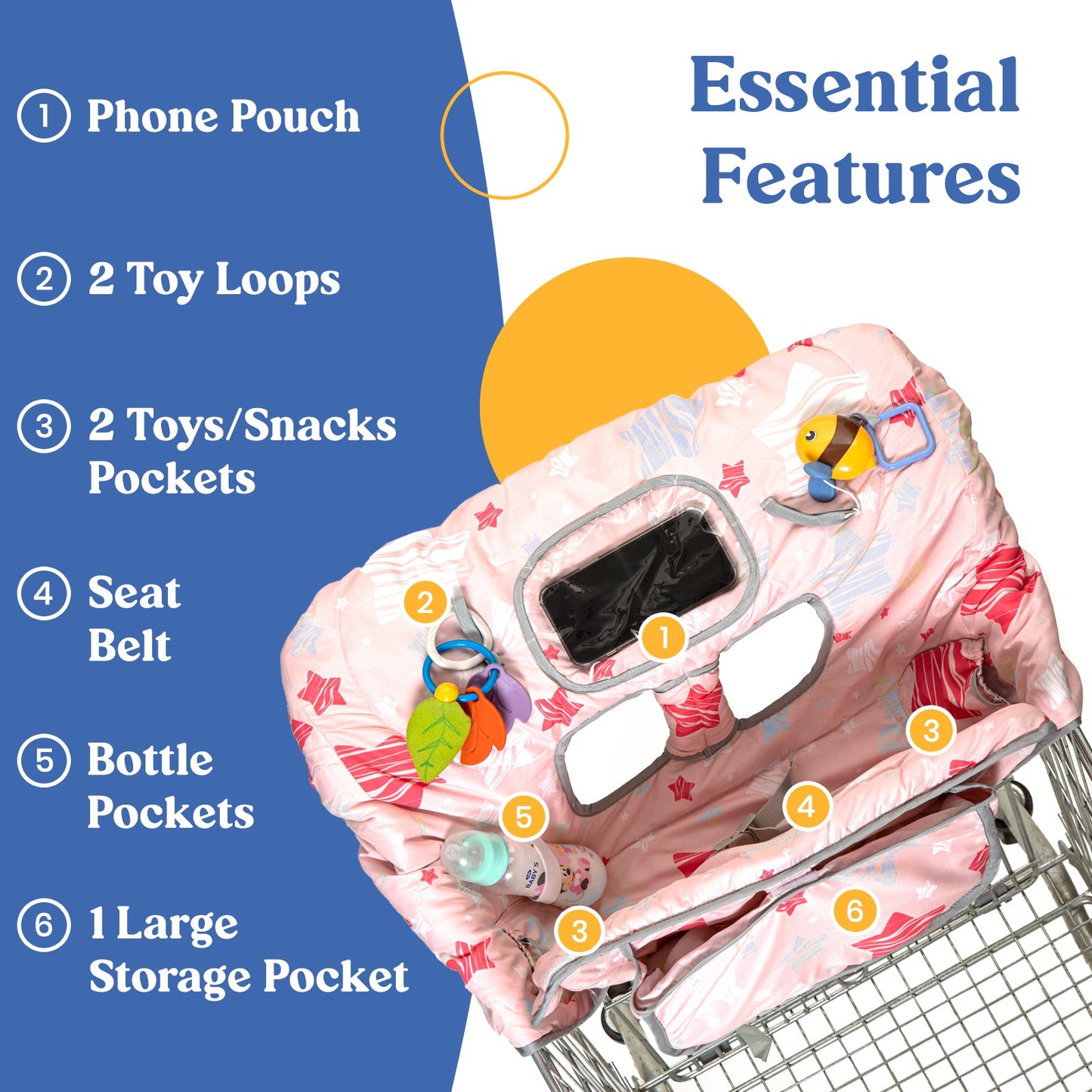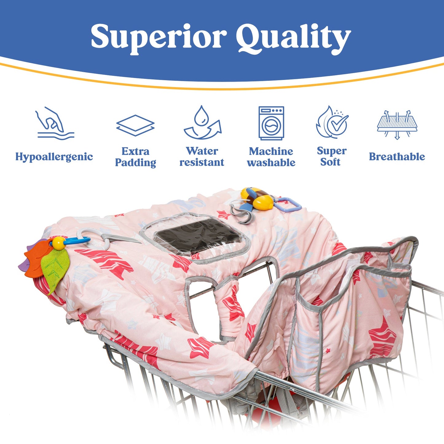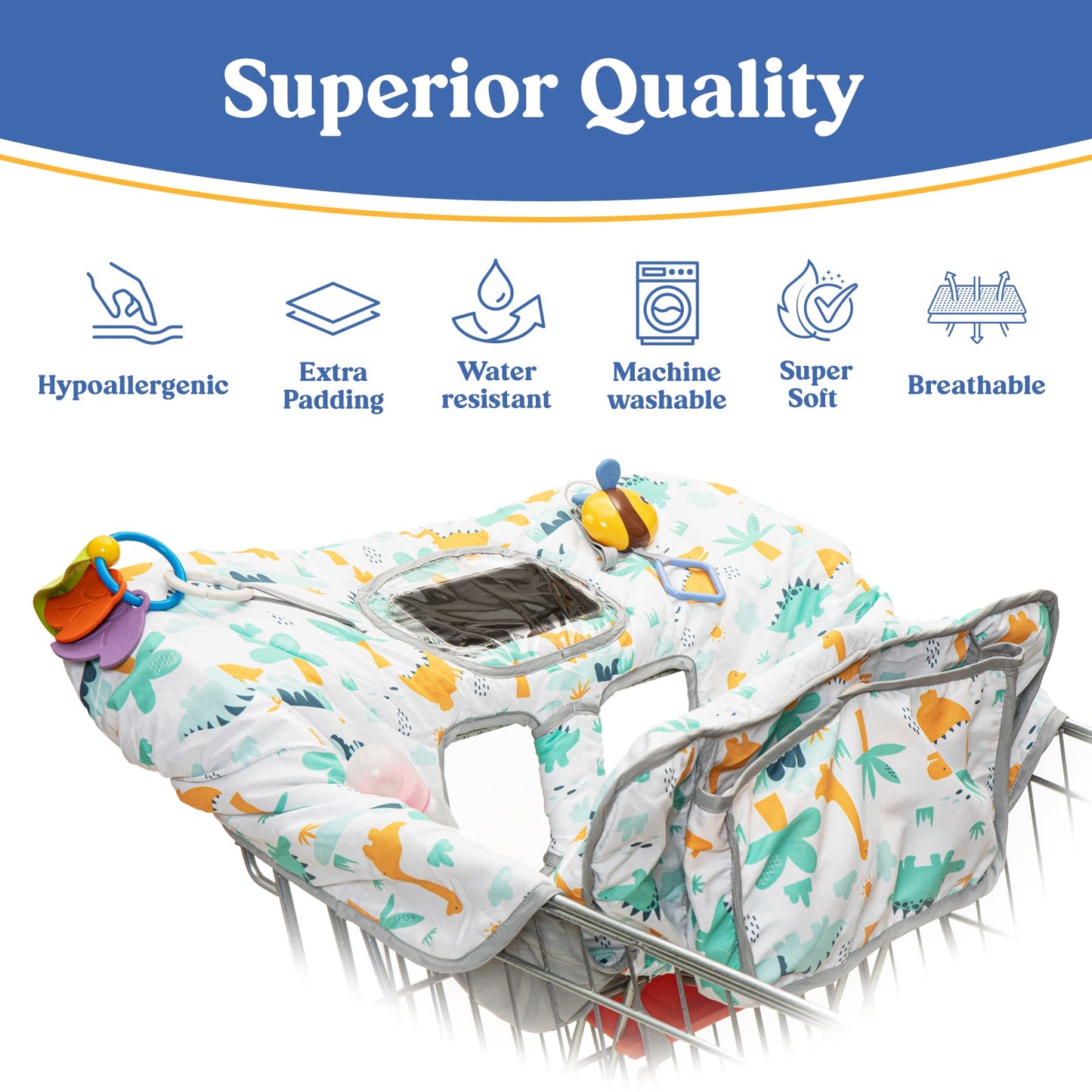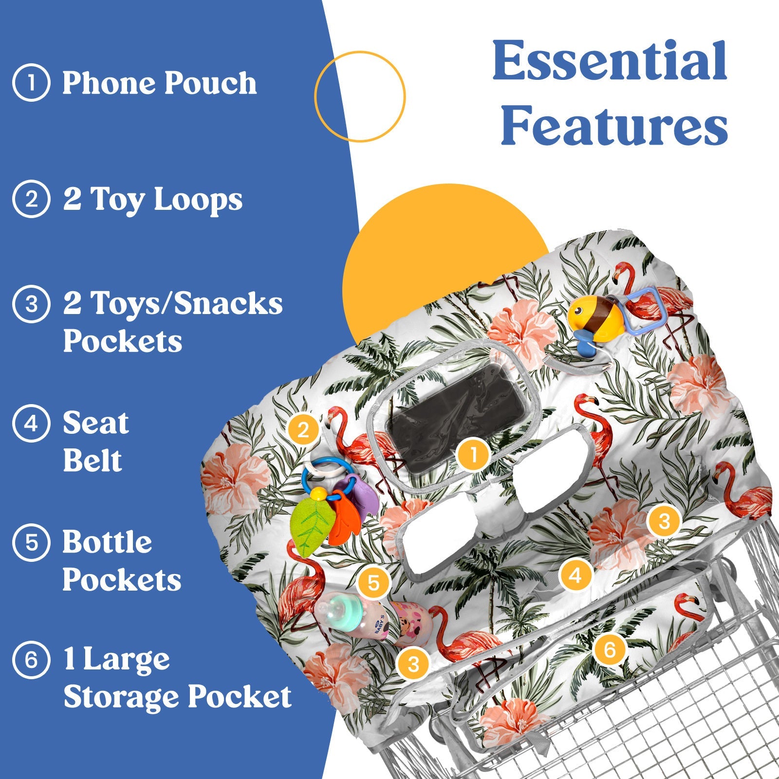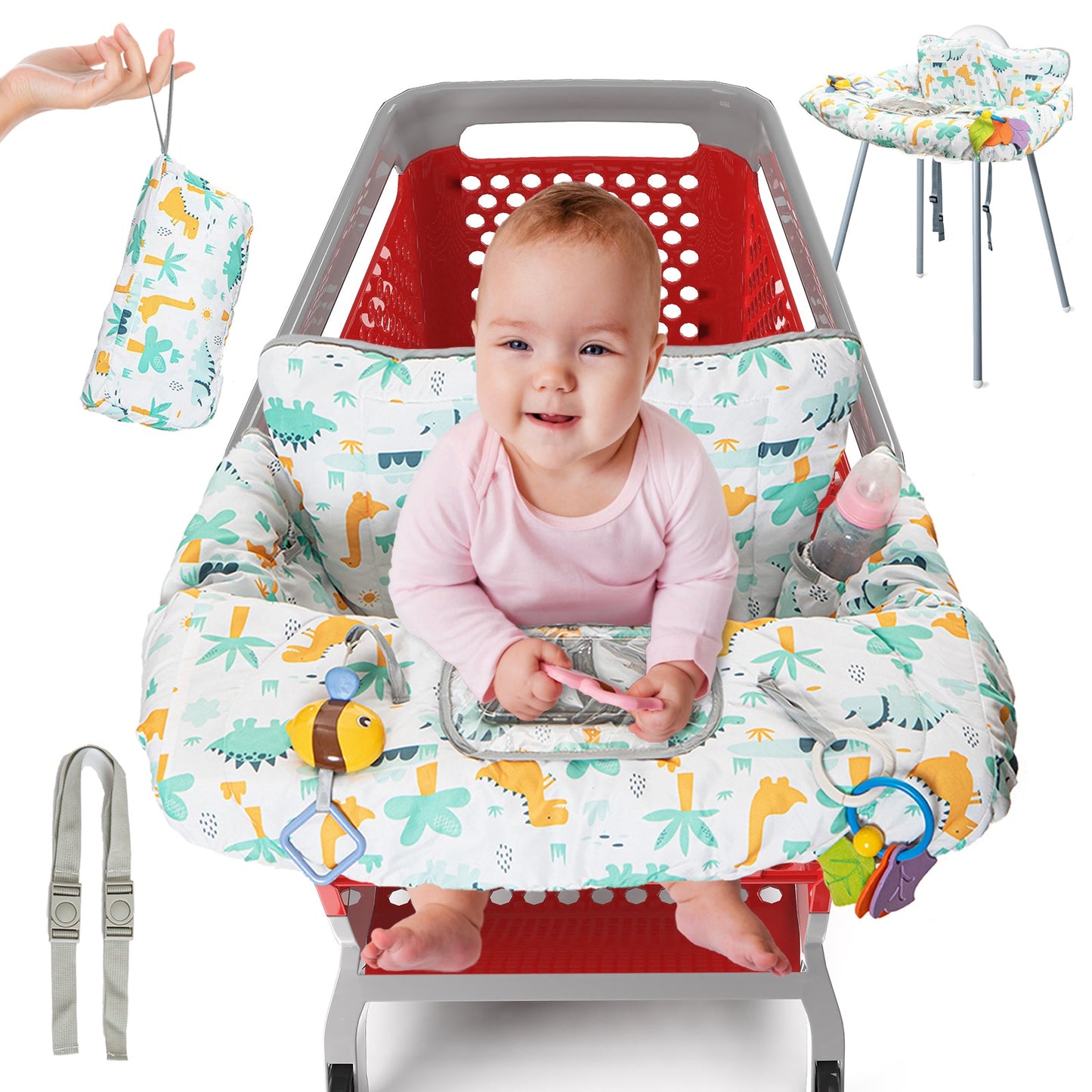 - Make your shopping spree with your child easy & worry-free! Our versatile seat cover helps you save time in wiping & have more time for shopping. It provides a 360-degree protection to keep your toddler's hands, body and mouth from touching that dirty cart so your child doesn’t contract any nasty ailments, and the same goes for you. An absolute way of keeping baby stuff clean! Our shopping cart cover for baby makes it an ideal part of your baby's must haves.