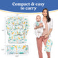 - With 2 adorable designs to choose from, Stars and Dinosaurs, it’s ideal for boys and girls. Our seat cover is also designed with 2 snack pockets, a bottle/cup holder with strap, smartphone pocket that fits most phone sizes, 2 toy loops for hanging toys, and a large pocket for extra baby essentials. It's compact and easy to install and carry, measuring 31.5" x 40" that's spacious enough but still travel-friendly. It can be folded into a lightweight pillow.