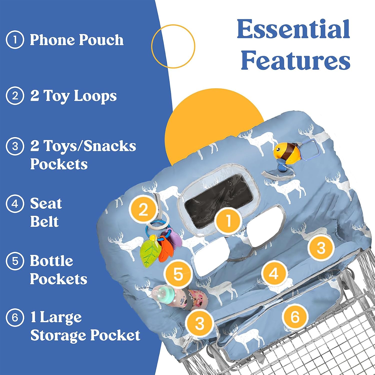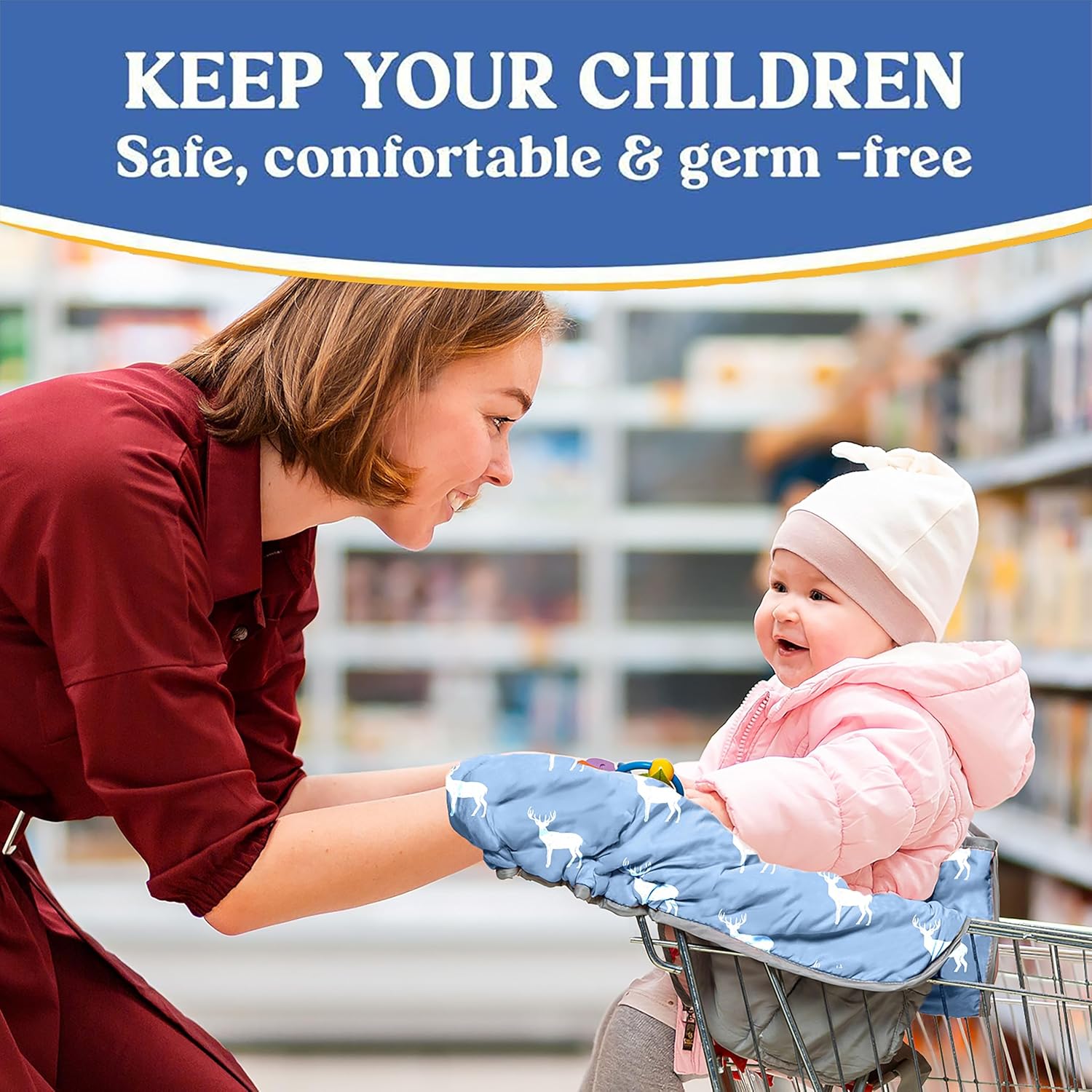 - Make your shopping spree with your child easy & worry-free! Our versatile seat cover helps you save time in wiping & have more time for shopping. It provides a 360-degree protection to keep your toddler's hands, body and mouth from touching that dirty cart so your child doesn’t contract any nasty ailments, and the same goes for you. An absolute way of keeping baby stuff clean! Our shopping cart cover for baby makes it an ideal part of your baby's must haves.